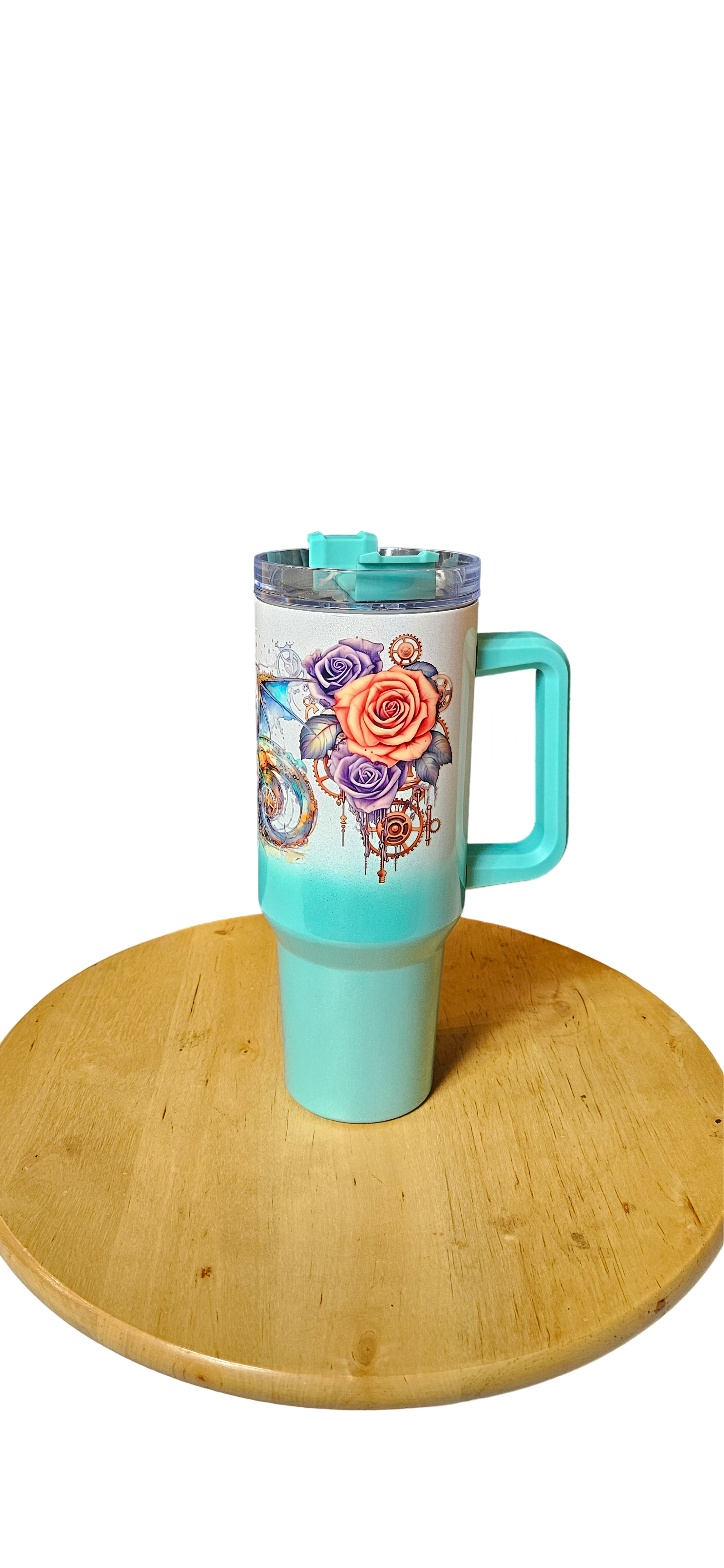 Unleash your inner adventurer with this stunning steampunk dragon-themed insulated tumbler. Featuring a turquoise base adorned with intricate details of a dragon interwoven with gears and mechanical elements, the design is a perfect fusion of fantasy and industrial artistry.